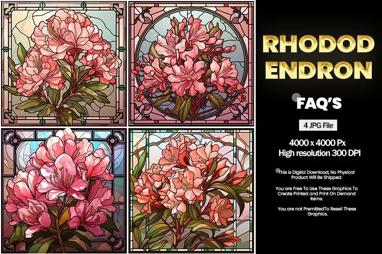 Stained Glass Rhododendron Square Coaster - 04 Variations example image 1