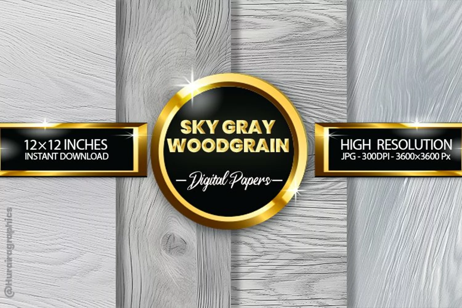 Sky Gray Woodgrain Digital Papers - 04 Variations