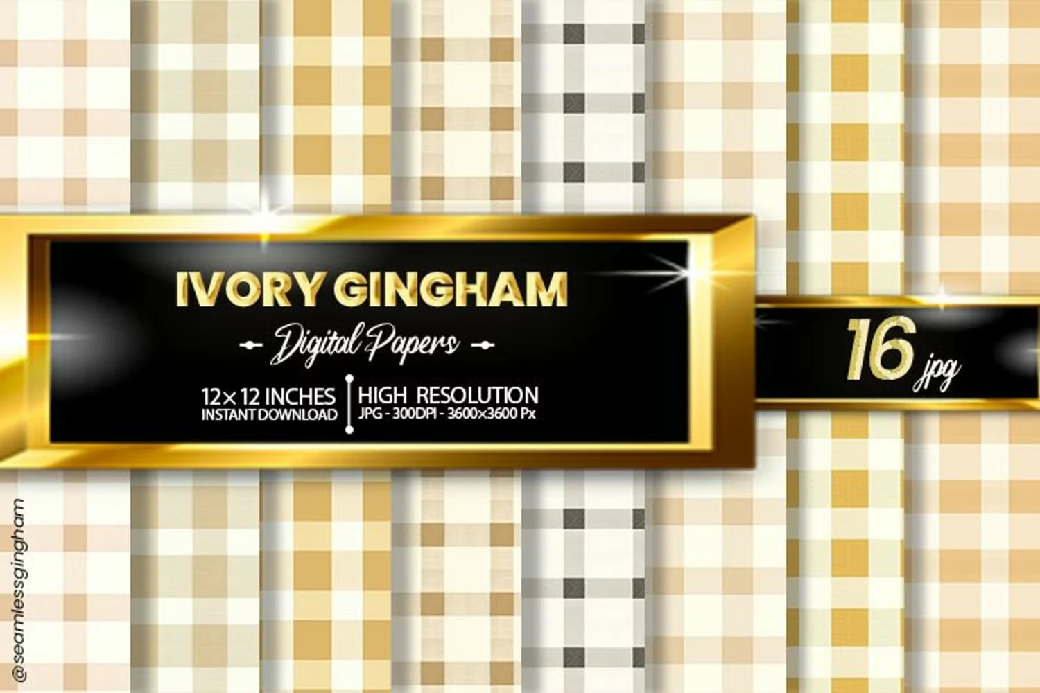 Ivory Gingham Digital Papers 16 Variations example image 1