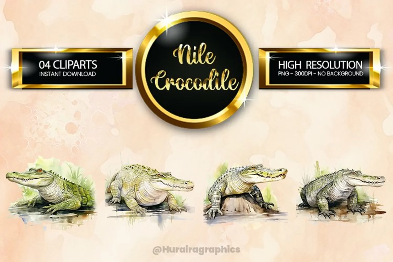 Nile Crocodile Clipart 04 variations