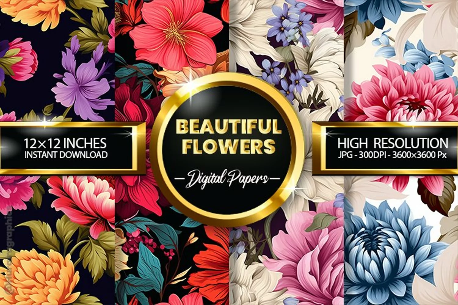 Similar Design Products to Beautiful Flowers Digital Papers - 04 Variations