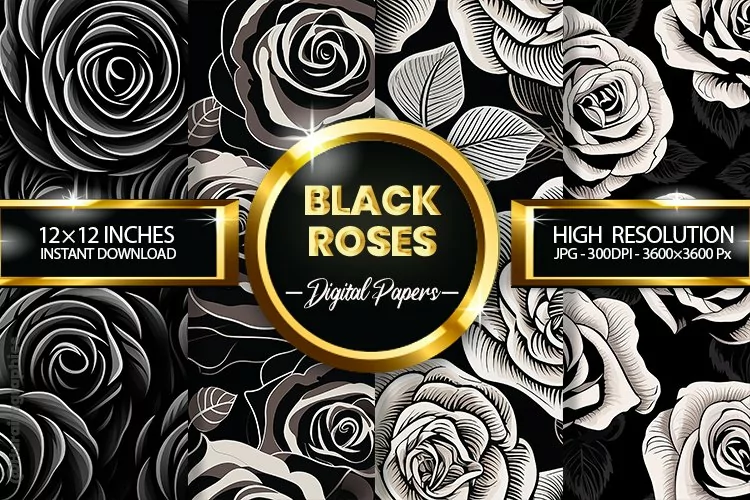 Digital Paper Seamless Pattern Scrapbook Paper Black Roses Digital Paper Set Digital Paper Sets 3d Digital Paper Black Roses Sublimation Black Roses Digital Paper Black Roses Design