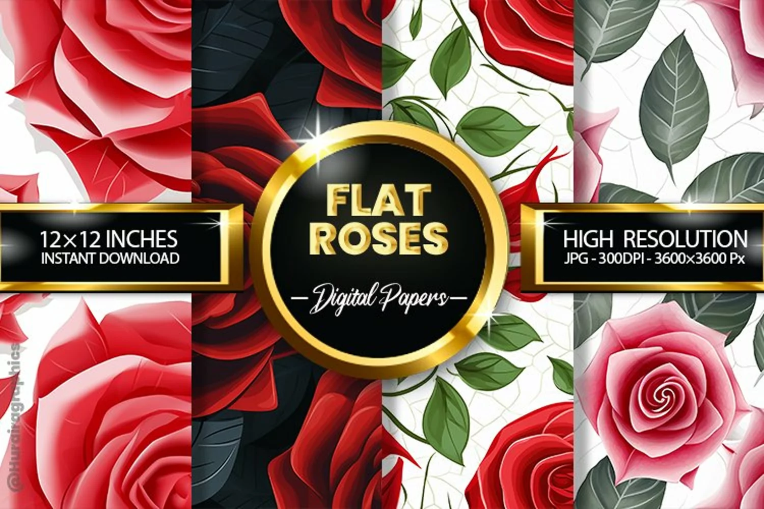 Similar Design Products to Flat Roses Digital Papers - 04 Variations