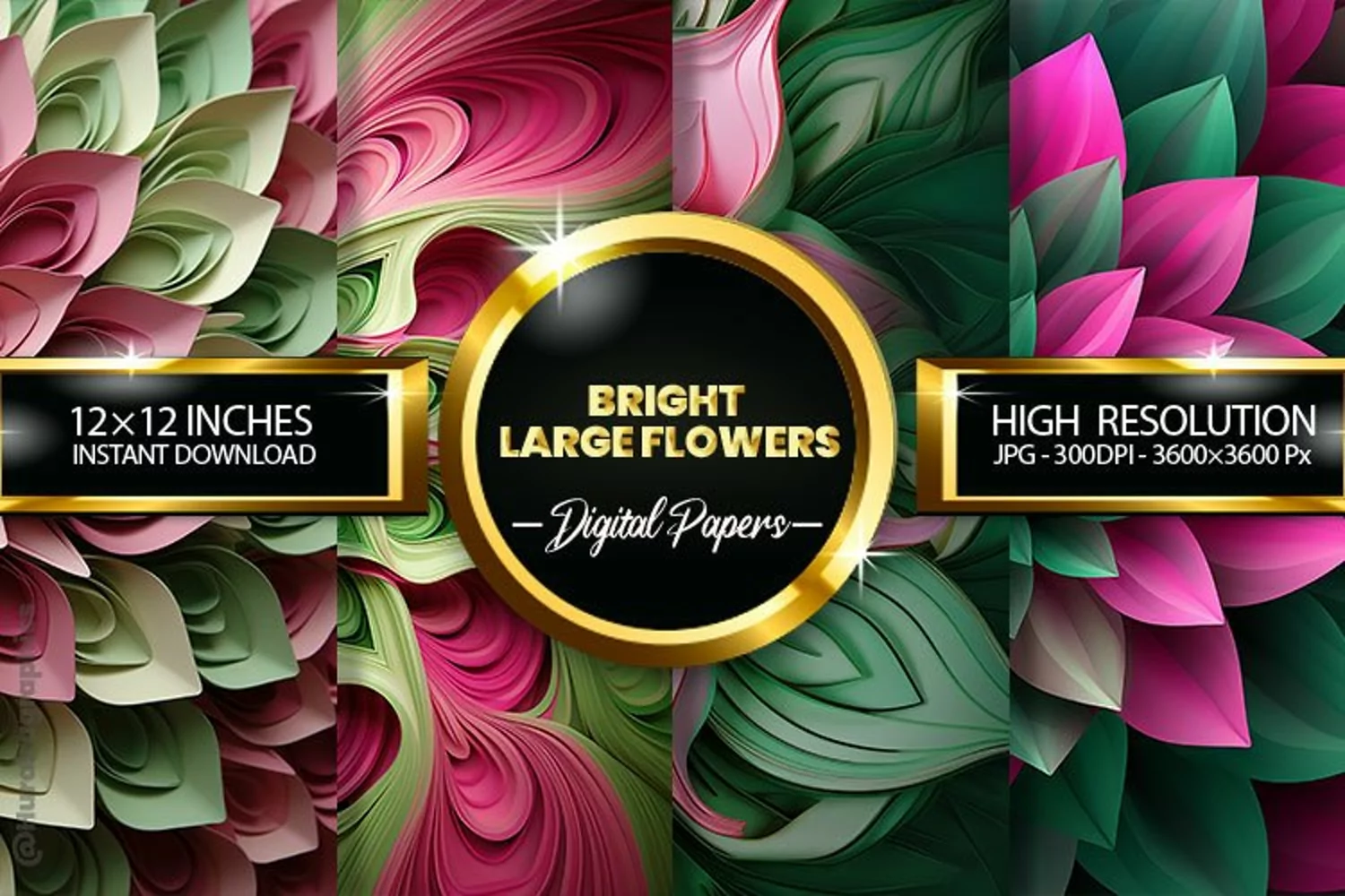 Bright Large Flowers Digital Papers - 04 Variations