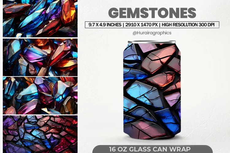 Gemstones Glass Can Wrap, 16 Oz Tumbler Sublimation is Perfect and Ready to use.