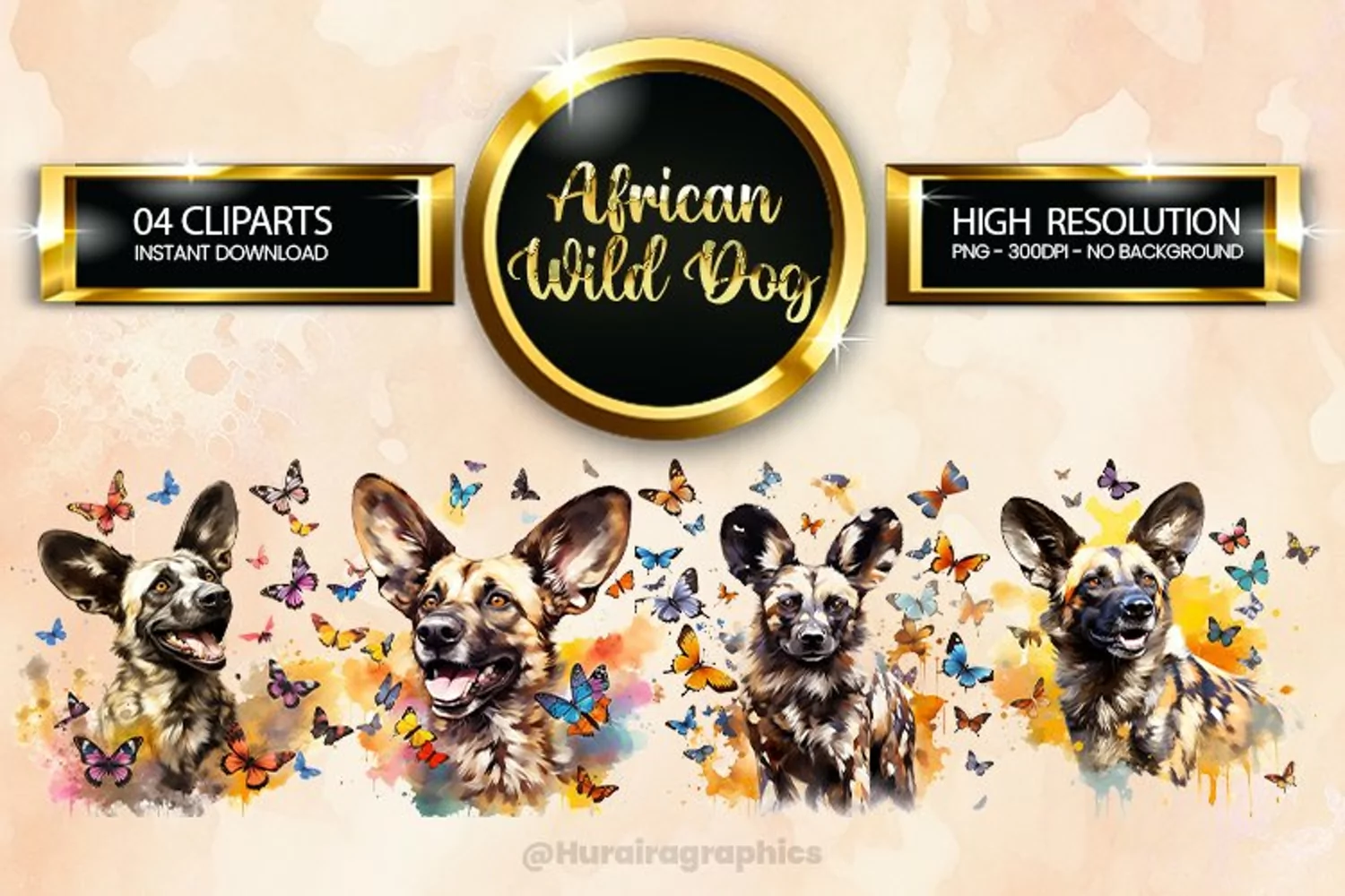 African Wild Dog Clipart 04 variations