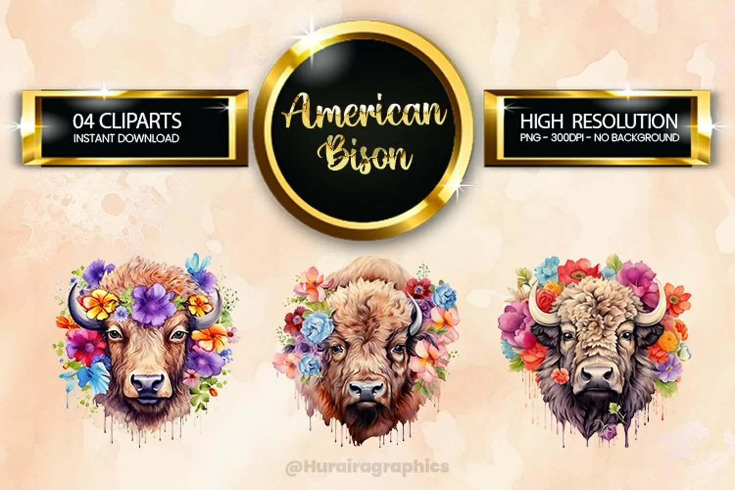 American Bison Clipart 03 variations
