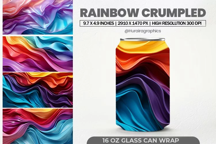 Rainbow Crumpled Glass Can Wrap, 16 Oz Tumbler Sublimation is Perfect and Ready to use.
