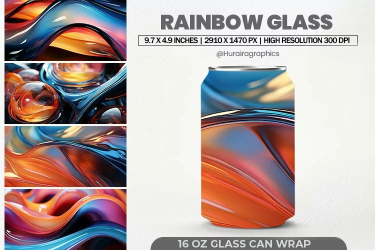 Rainbow Glass Can Wrap, 16 Oz Tumbler Sublimation is Perfect and Ready to use.