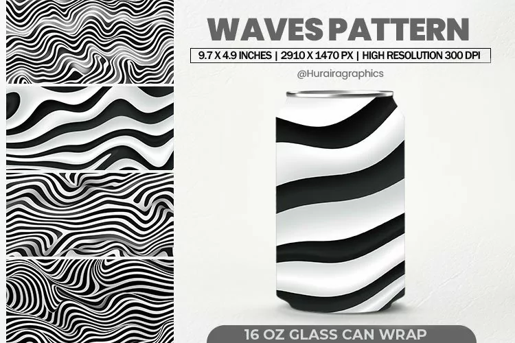 Waves Pattern Glass Can Wrap, 16 Oz Tumbler Sublimation is Perfect and Ready to use.