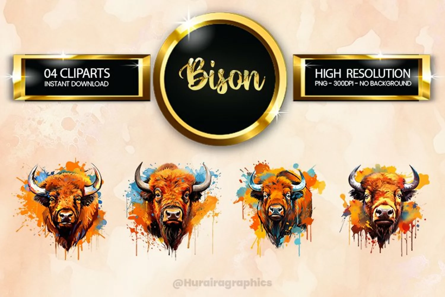 Bison Clipart 04 variations