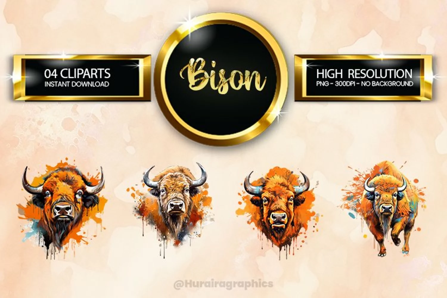Bison Clipart 04 variations