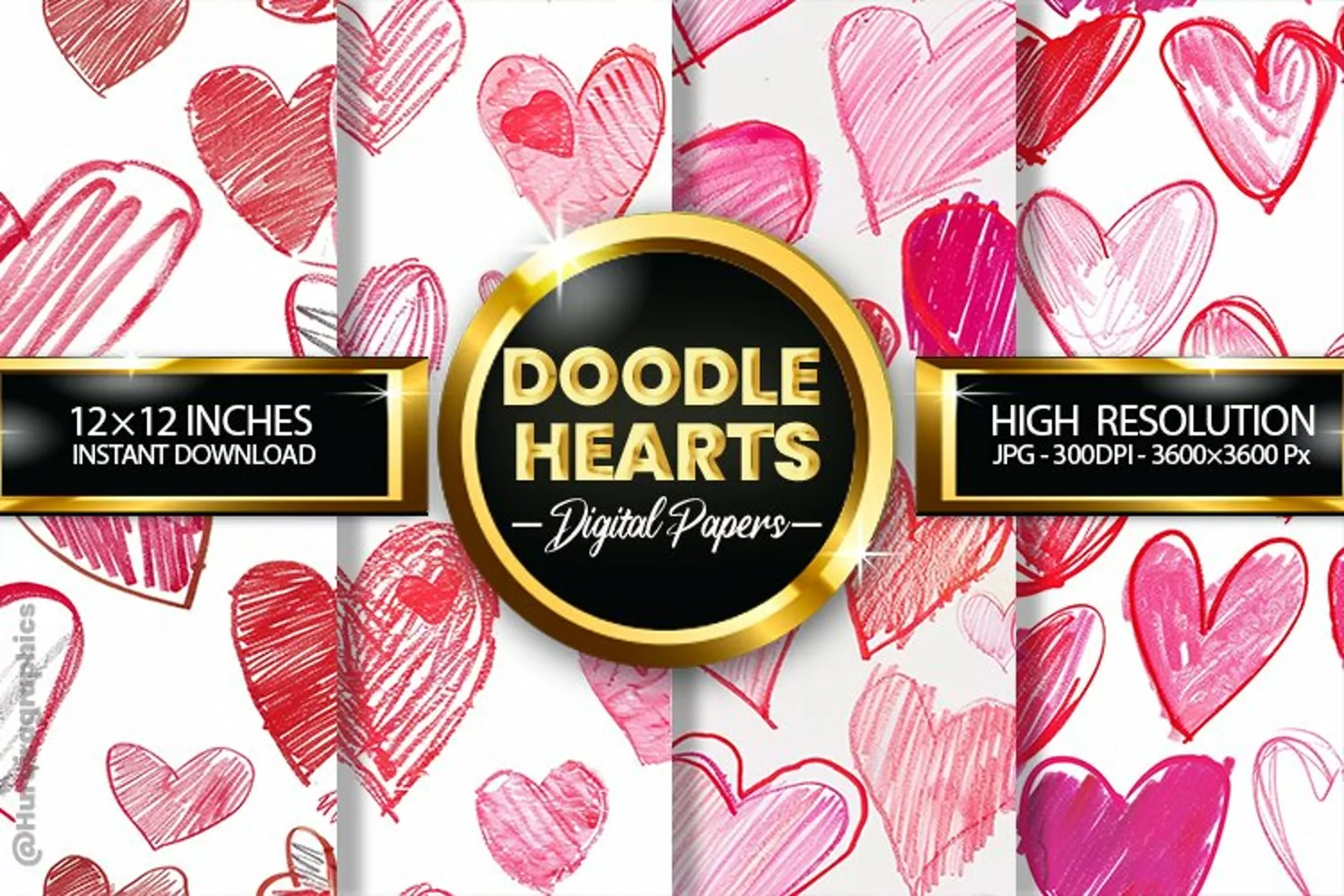 Similar Design Products to Doodle Hearts Digital Papers - 04 Variations