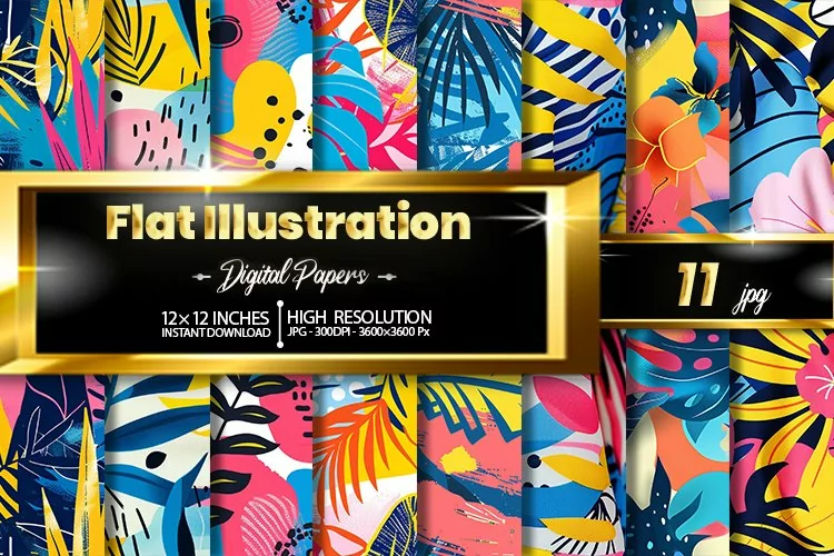 Flat Illustration Digital Papers Bundle