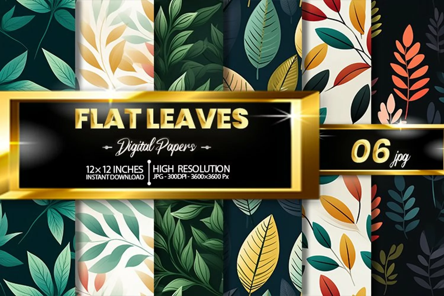 Flat Leaves Digital Papers Bundle