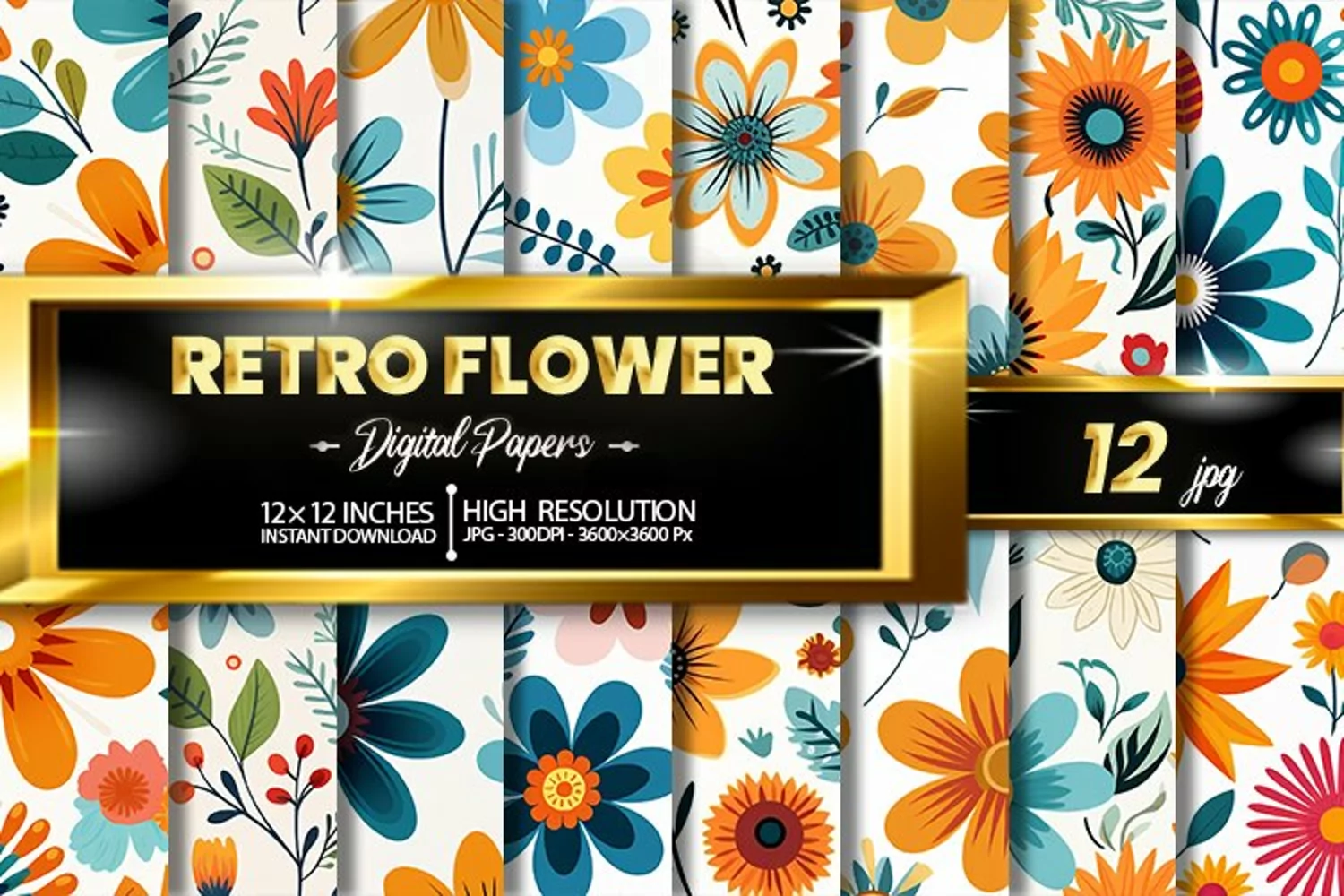 Similar Design Products to Retro Flowers Digital Papers Bundle