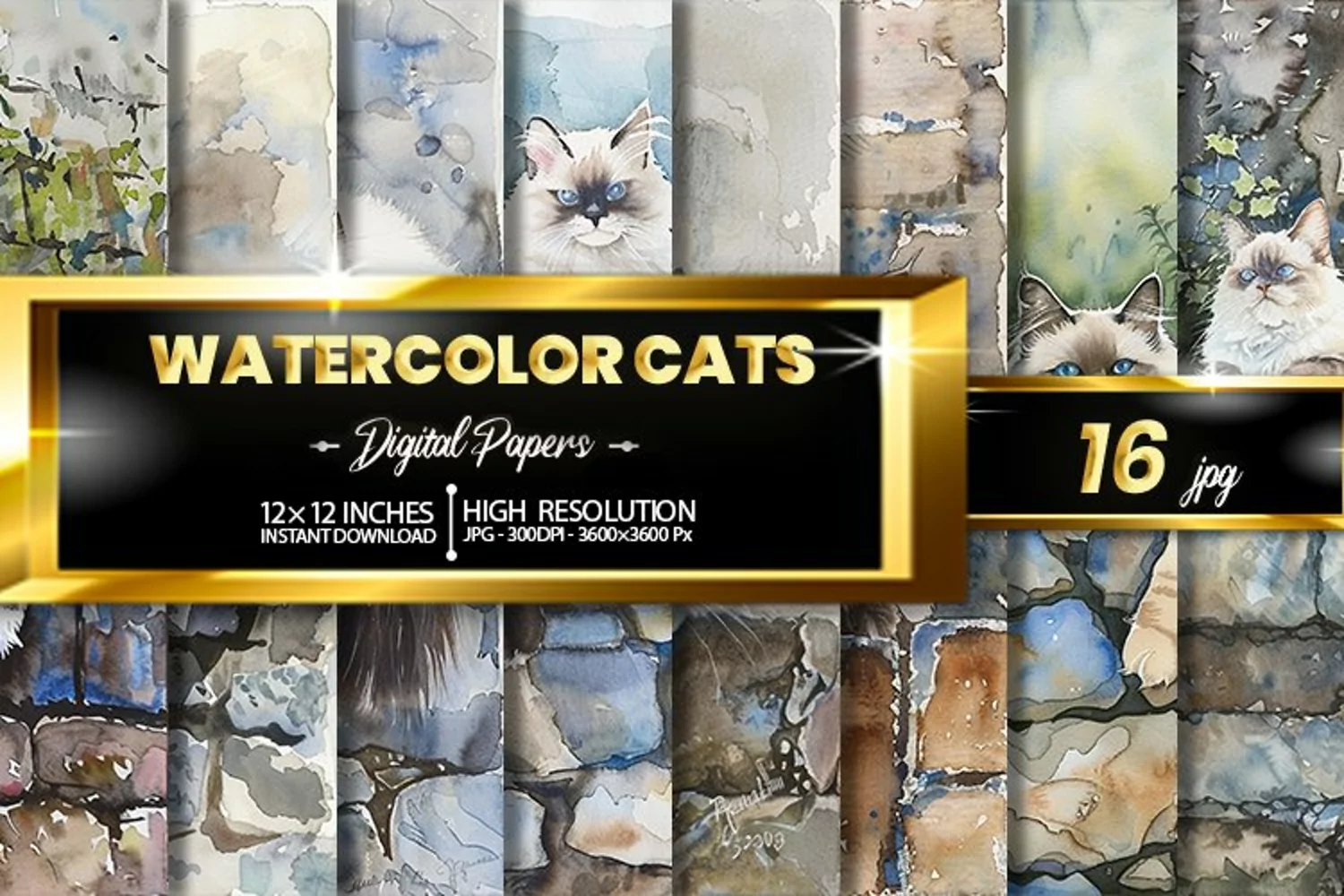 Watercolor Cats Digital Papers Bundle