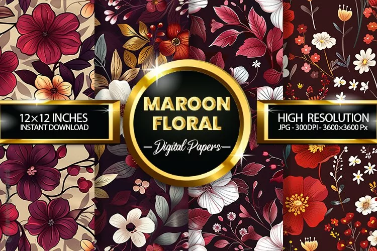Maroon Floral Digital Papers is perfect for Gift Wrapping, Promotional Items, Invitations, Wallpaper, Greeting Cards, Planners, Journals, Scrapbook, Notebook Covers, T-Shirts, Mugs, Tumbler, Puzzles, Crafting and much more. This Digital Paper is a popular choice for people on the go.