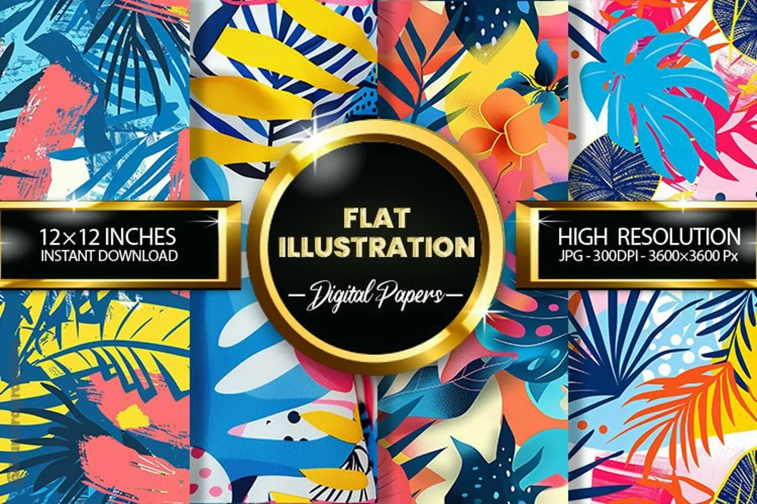 Flat Illustration Digital Papers - 04 variaions example image 1
