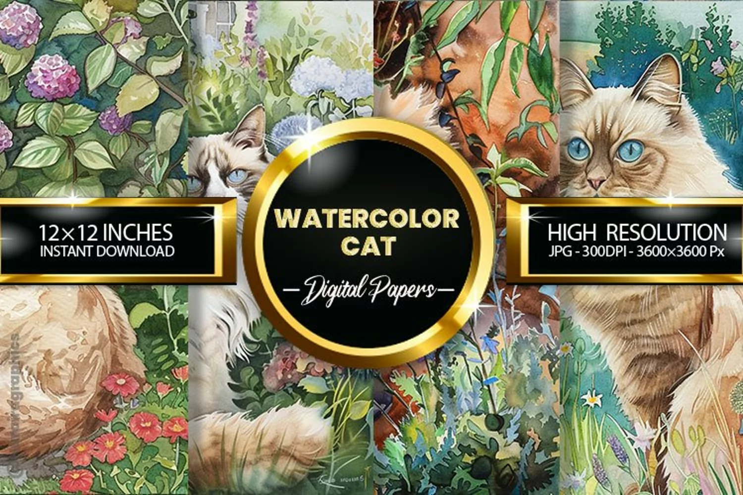 Watercolor Cat Digital Papers - 04 Variations