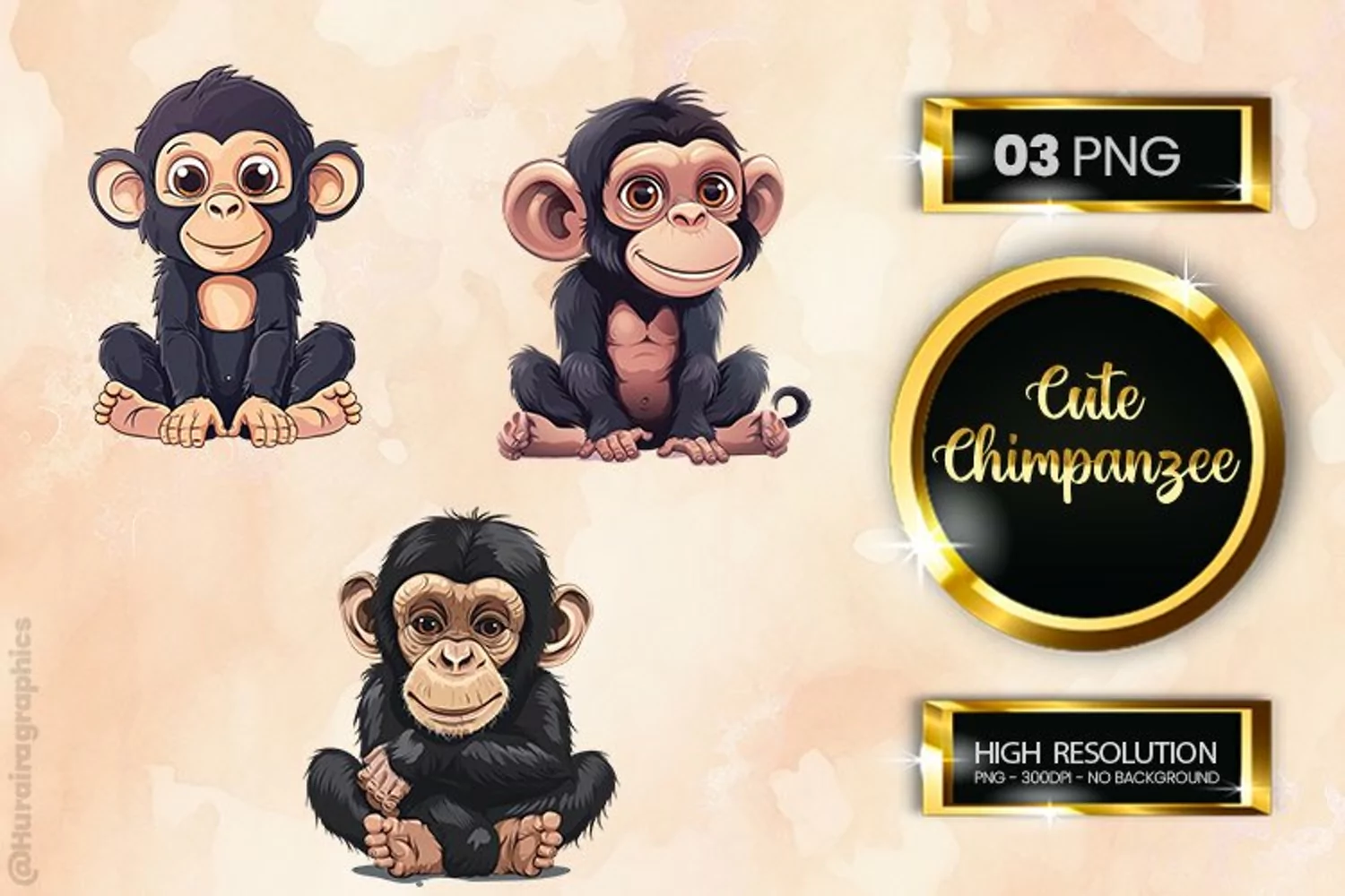 Cute Chimpanzee Clipart 03 variations