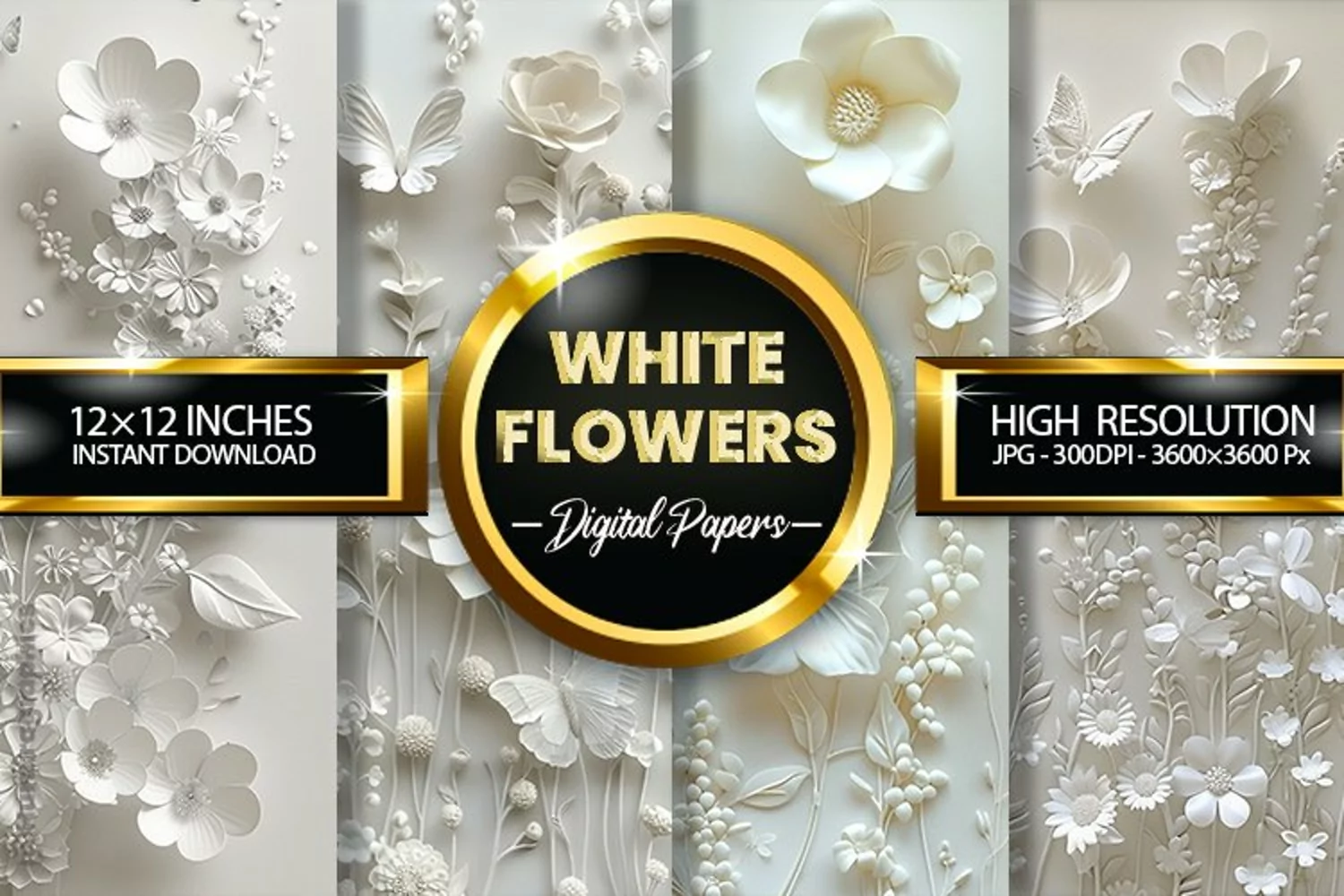 White Flowers Digital Papers - 04 Variations