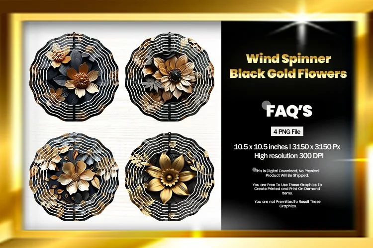 Gold flowers Wind Spinner Sublimation Design - 04 Variations