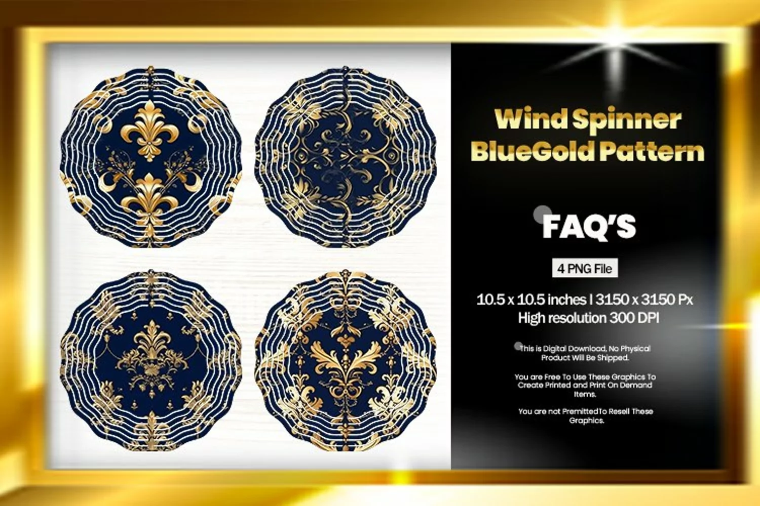 Gold Pattern Wind Spinner Sublimation Design - 04 Variations