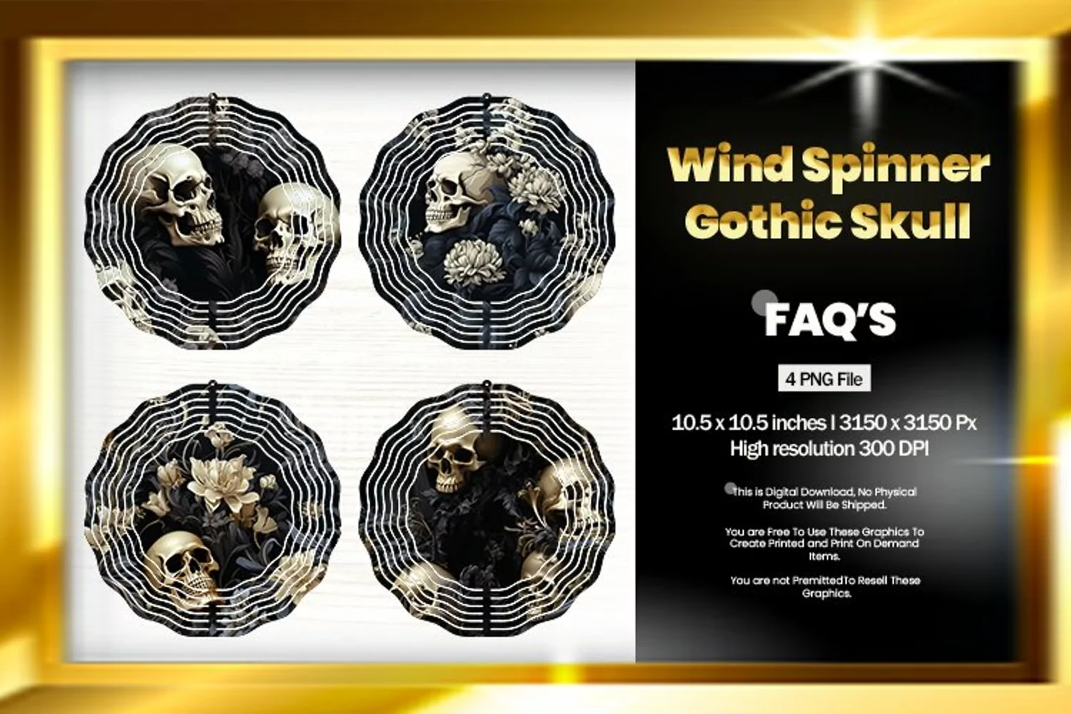 Gothic Skull Wind Spinner Sublimation Design - 04 Variations