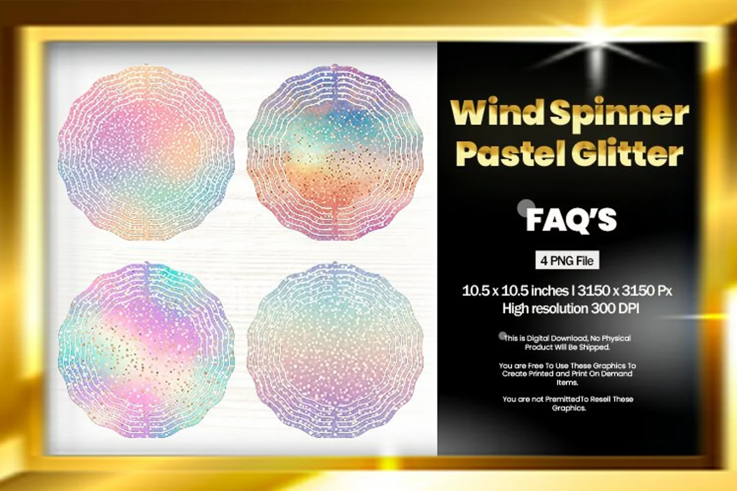 Pastel Glitter Wind Spinner Sublimation Design