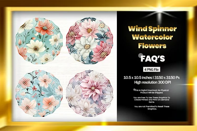Watercolor Flowers Wind Spinner Sublimation Design