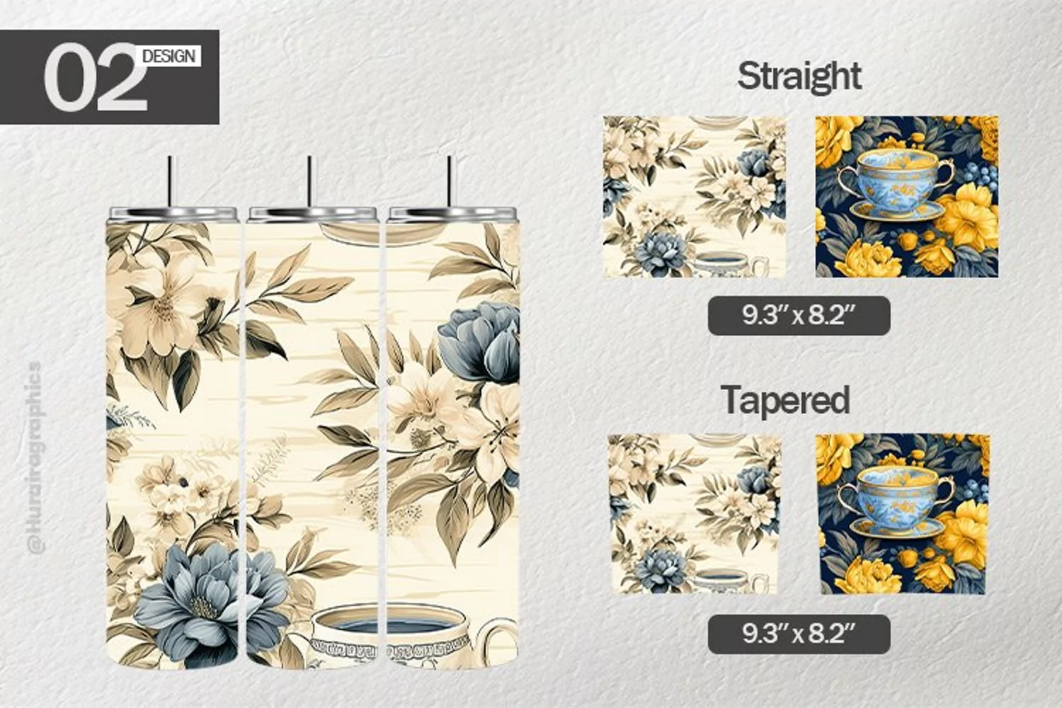 Floral Crockery Tumbler Wrap| Tumbler Sublimation Wrap example image 1