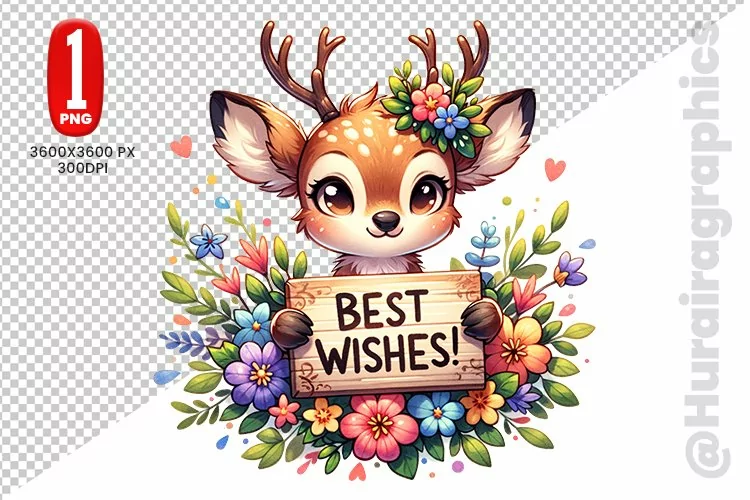 Best Wishes Cute Deer Clipart - PNG File example image 1