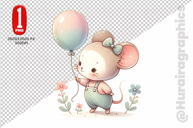 Cute Clipart Ballon Sublimation Cute Clipart Animal Clipart Mouse Clipart Cute Mouse Mouse Sublimation Mouse Cartoon