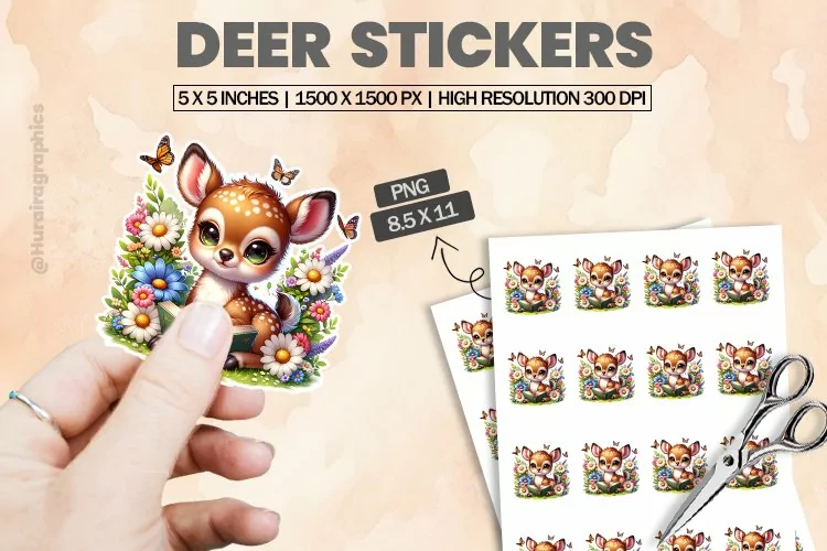 Printable Stickers Printable Sticker Print And Cut Stickers Sticker Png Sticker Sheet Cute Sticker Animal Sticker Deer Stickers Cut Sticker Sheet