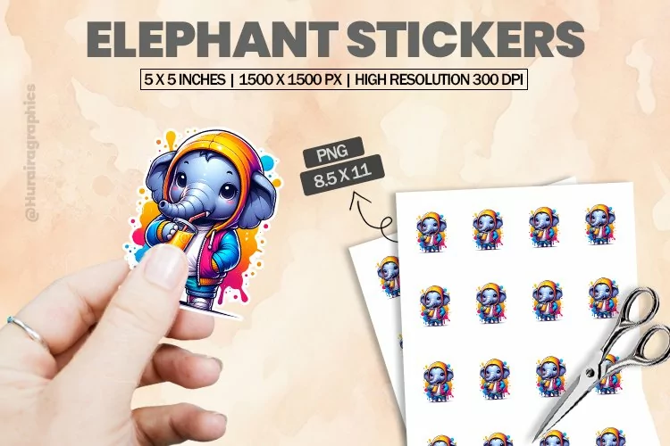 Printable Stickers Printable Sticker Print And Cut Stickers Sticker Png Sticker Sheet Elephant Stickers Cute Sticker Animal Sticker Cut Sticker Sheet