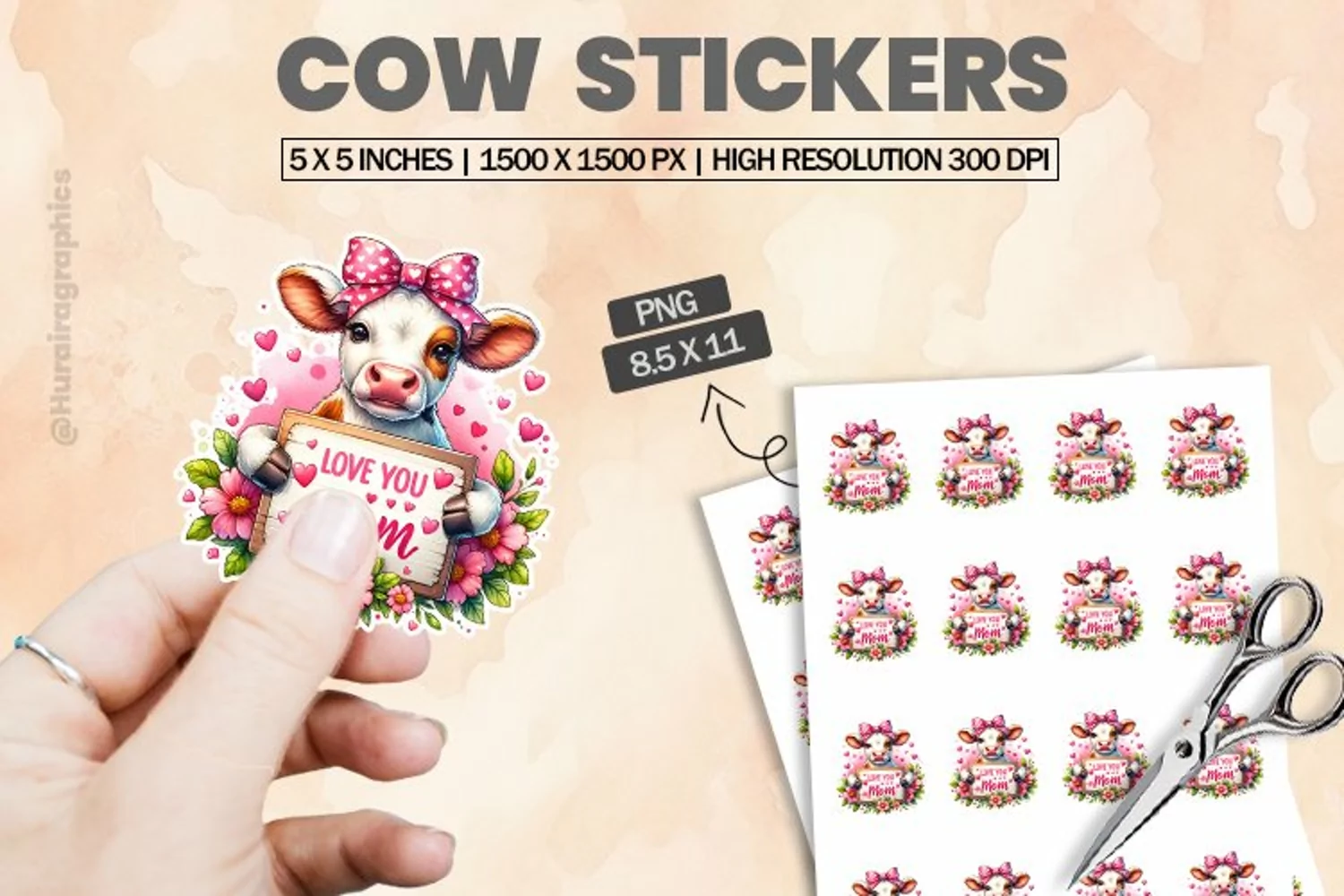 Printable Stickers Printable Sticker Print And Cut Stickers Sticker Png Sticker Sheet Cute Sticker Animal Sticker Cow Stickers Cut Sticker Sheet