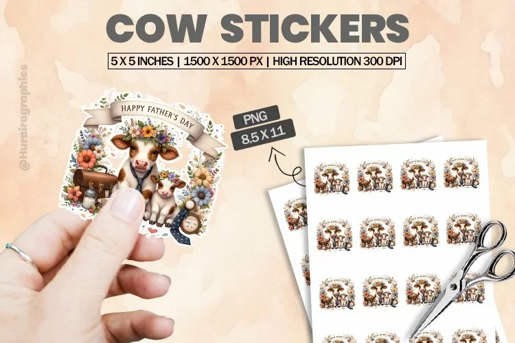 Printable Stickers Printable Sticker Print And Cut Stickers Sticker Png Sticker Sheet Cute Sticker Animal Sticker Cow Stickers Cut Sticker Sheet