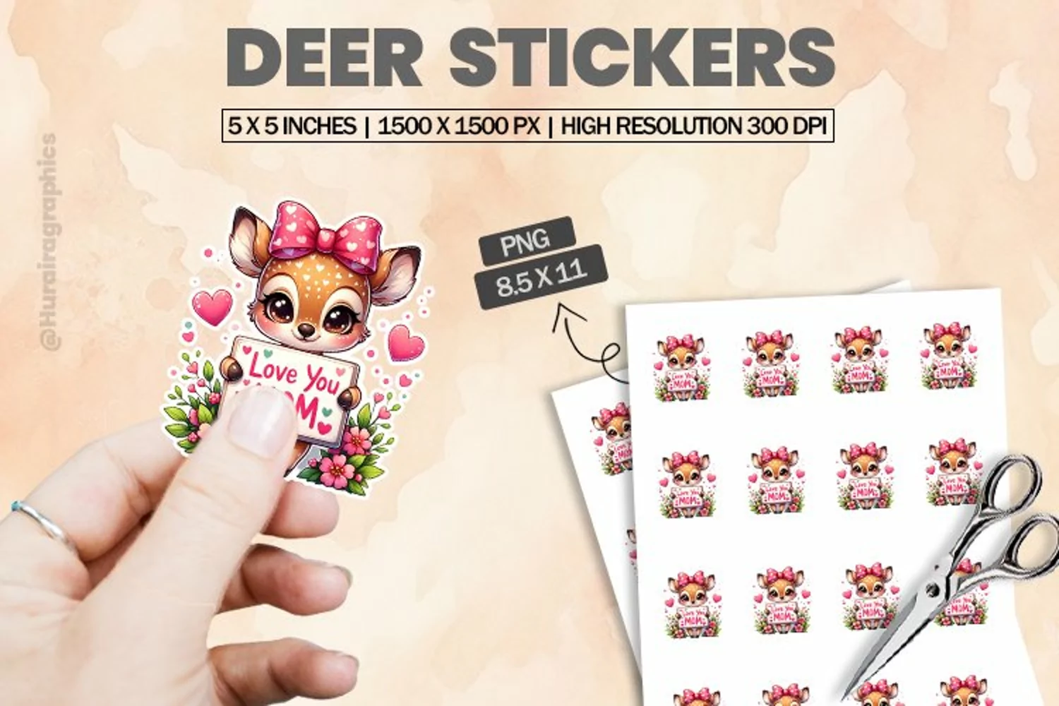 Printable Stickers Printable Sticker Print And Cut Stickers Sticker Png Sticker Sheet Cute Sticker Animal Sticker Deer Stickers Cut Sticker Sheet