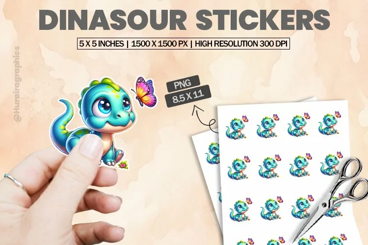 Printable Stickers Printable Sticker Print And Cut Stickers Sticker Png Sticker Sheet Cute Sticker Animal Sticker Cut Sticker Sheet Dinasour Stickers