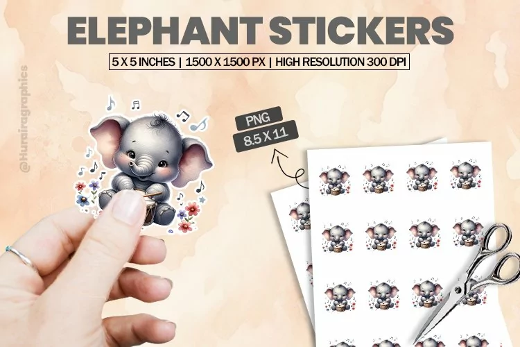 Printable Stickers Printable Sticker Print And Cut Stickers Sticker Png Sticker Sheet Elephant Stickers Cute Sticker Animal Sticker Cut Sticker Sheet