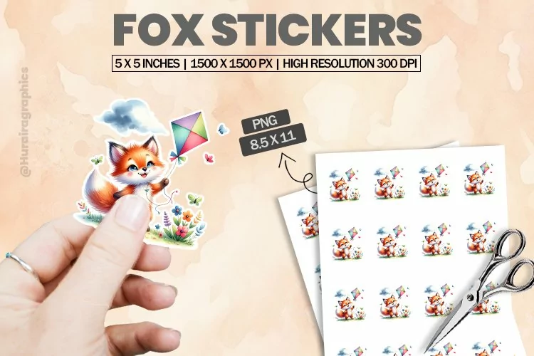 Printable Stickers Printable Sticker Print And Cut Stickers Sticker Png Sticker Sheet Cute Sticker Animal Sticker Fox Stickers Cut Sticker Sheet