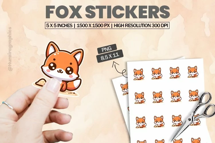 Printable Stickers Printable Sticker Print And Cut Stickers Sticker Png Sticker Sheet Cute Sticker Animal Sticker Fox Stickers Cut Sticker Sheet