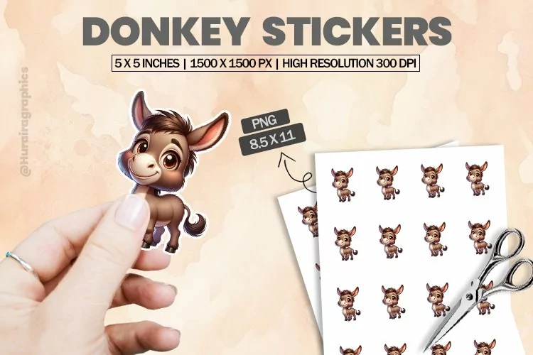 Printable Stickers Printable Sticker Print And Cut Stickers Sticker Png Sticker Sheet Cute Sticker Animal Sticker Donkey Stickers Cut Sticker Sheet
