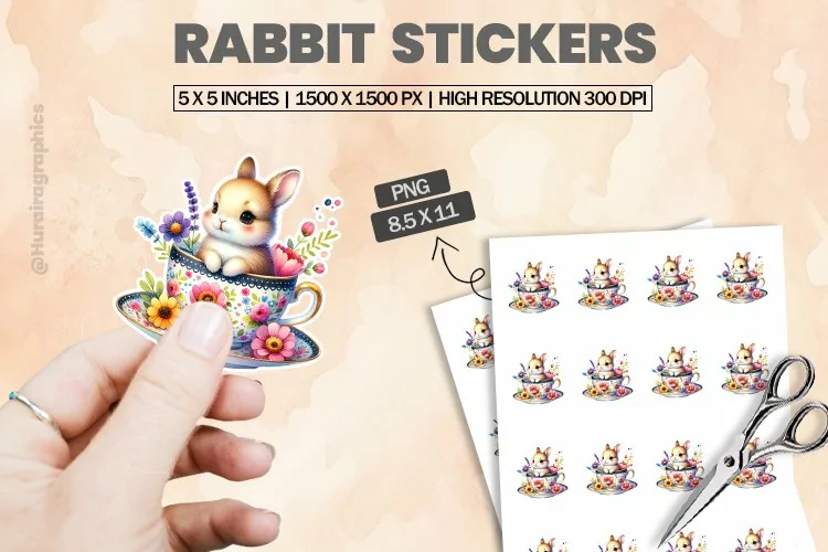 Printable Stickers Printable Sticker Print And Cut Stickers Sticker Png Sticker Sheet Cute Sticker Animal Sticker Rabbit Stickers Cut Sticker Sheet