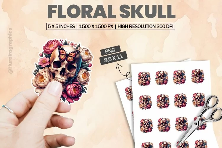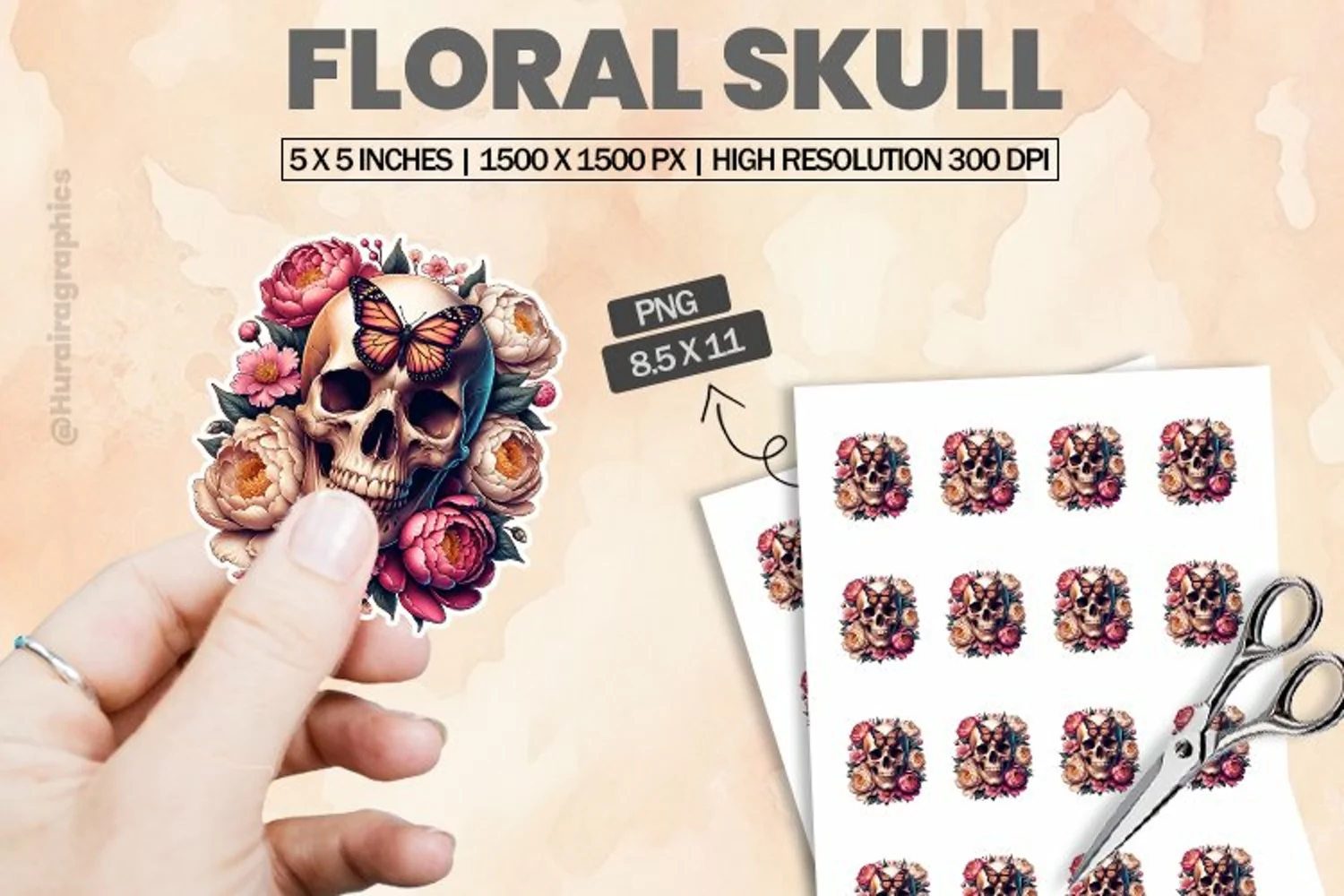 Printable Stickers Floral Skull Printable Sticker Print And Cut Stickers Sticker Png Sticker Sheet Cute Sticker Animal Sticker Cut Sticker Sheet