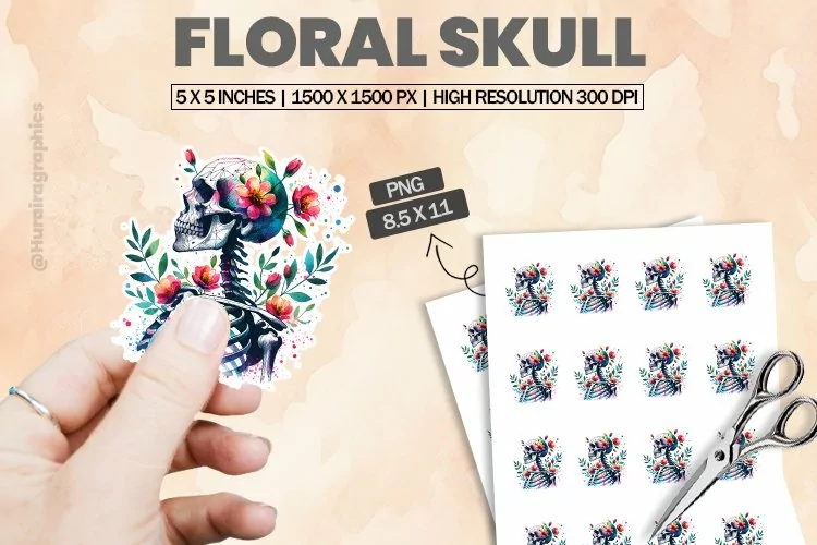 Printable Stickers Floral Skull Printable Sticker Print And Cut Stickers Sticker Png Sticker Sheet Cute Sticker Animal Sticker Cut Sticker Sheet