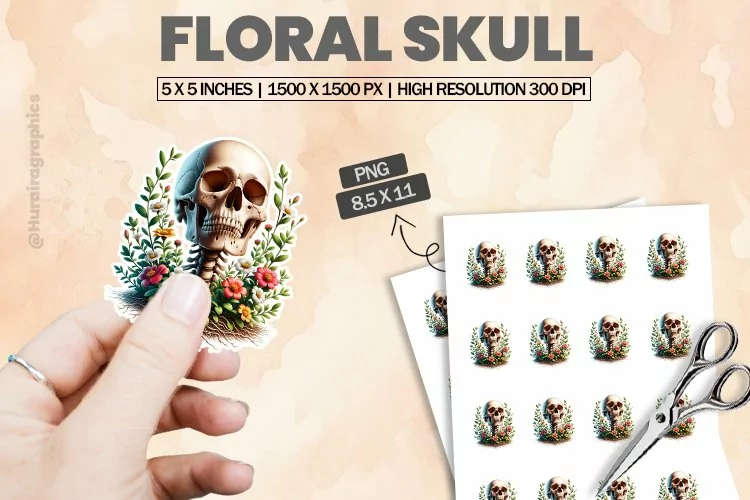 Printable Stickers Floral Skull Printable Sticker Print And Cut Stickers Sticker Png Sticker Sheet Cute Sticker Animal Sticker Cut Sticker Sheet