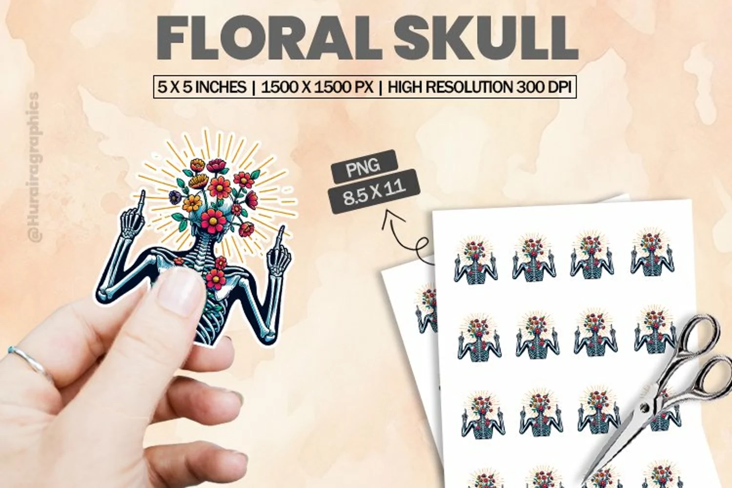 Printable Stickers Floral Skull Printable Sticker Print And Cut Stickers Sticker Png Sticker Sheet Cute Sticker Animal Sticker Cut Sticker Sheet