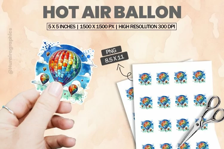 Printable Stickers Hot Air Ballon Printable Sticker Print And Cut Stickers Sticker Png Sticker Sheet Cute Sticker Animal Sticker Cut Sticker Sheet
